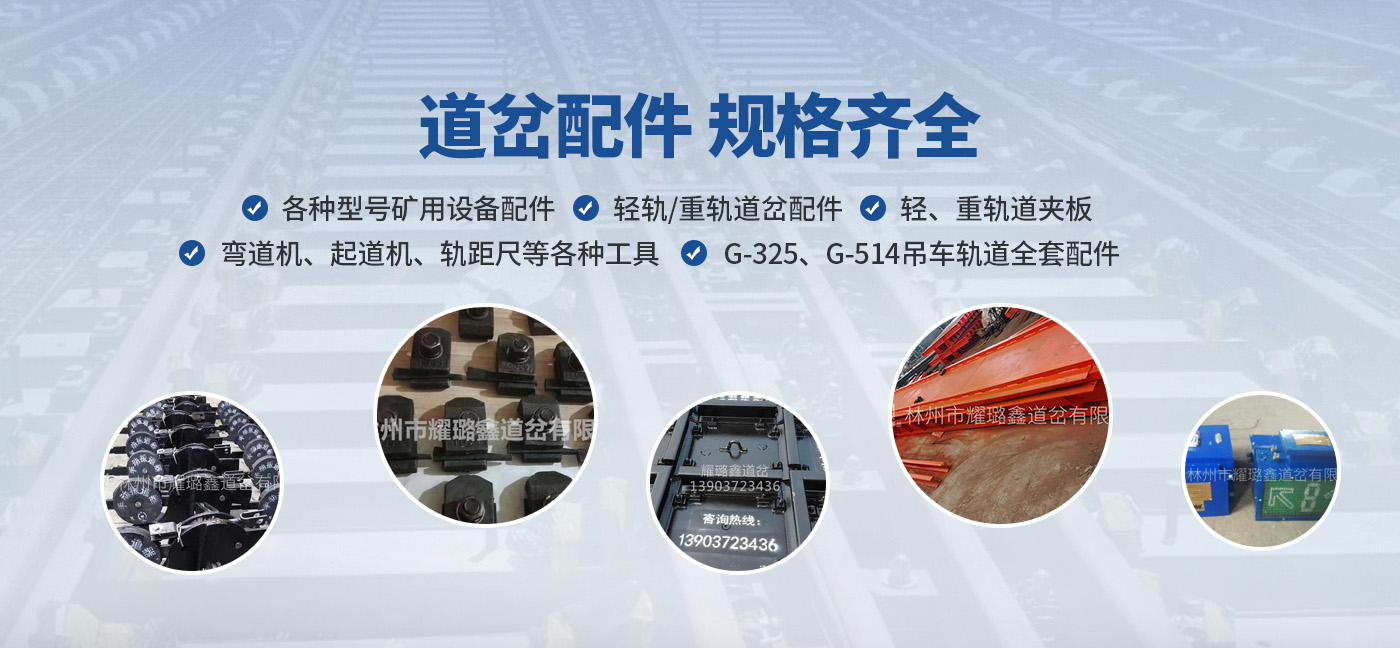 林州市耀璐鑫道岔有限公司位于風景秀麗的太行山紅旗渠畔,東臨京廣鐵路、京珠高速,交通便捷、通訊方便。我公司加工各類國家標準鐵路配件,檢測手段齊全,擁有高科技理化檢驗設備、溫控設備,達到產(chǎn)品質(zhì)量檢測要求。我公司主要加工經(jīng)營以下產(chǎn)品:1、各種型號礦用設備及配件;2、各種型號輕軌道岔、重軌道岔及配件;3、各種型號輕、重軌道夾板;4、輕軌、重軌線路用彎道機、起道機、軌距尺等各種工具;5、G-325、G-514吊車軌道全套配件。耀璐鑫道岔秉承“質(zhì)量可靠、誠信經(jīng)營”的經(jīng)營方針,以“優(yōu)質(zhì)服務、滿足顧客要求”為已任,嚴把質(zhì)量關,道岔產(chǎn)品和鐵路配件遠銷各大鋼廠、焦化廠、各大礦務局,受到新老客戶的好評與信賴!您的滿意,我的追求!林州市耀璐鑫道岔有限公司熱忱歡迎各地朋友真誠合作,光臨指導!
